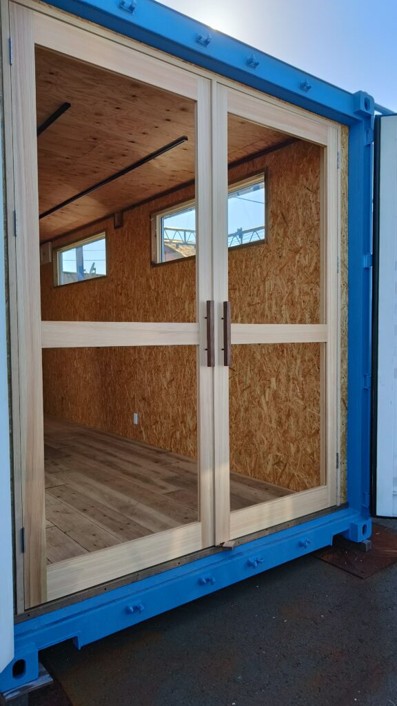 20フィートの海上コンテナハウスがほぼ完成しました。糸島市志摩師吉にて見学することができます。